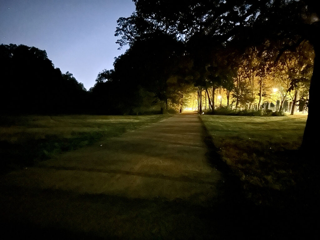 Kälte der Nacht am Treptower Park. Und mit mir ist natürlich der Flo.