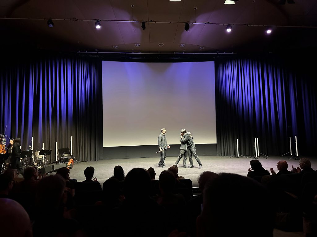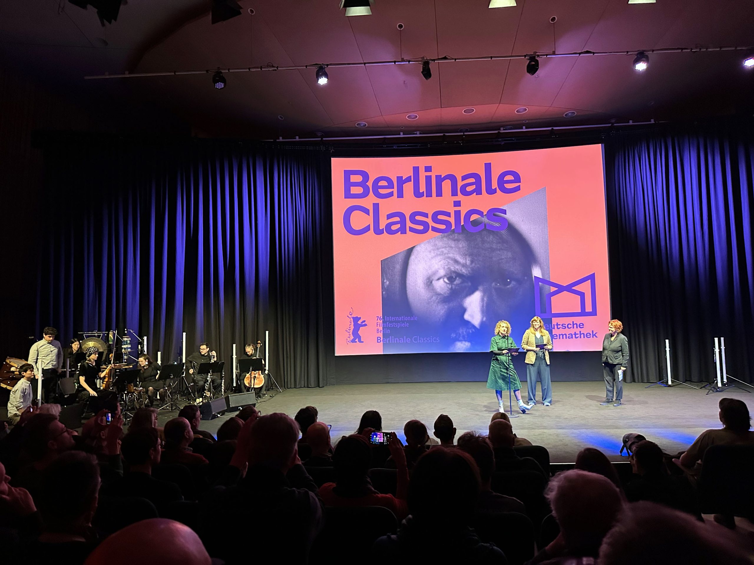 Der ganze Film wird auch begleitet, von live begleitet. Ich weiß gar nicht, ein Orchester...